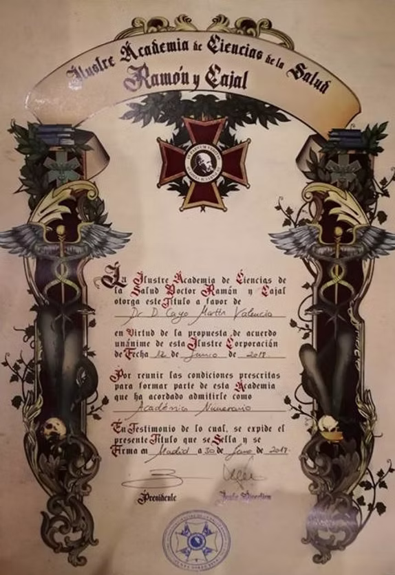 Académico Numerario de la Ilustre Academia de las Ciencias de la Salud Ramón y Cajal